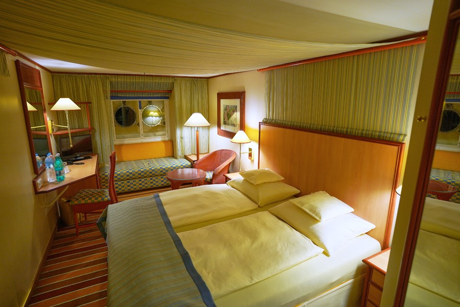 Максимальная вместимость: 2 человека. Двухместная каюта (площадь ≈13,7 м²) со всеми удобствами, расположенная на 4, 5, 6 и 7 палубах. В каюте: односпальная кровать, диван, кондиционер, гардероб, телевизор, телефон, фен, сейф, халаты, увлажнитель воздуха, ванная комната с душем и туалетом.