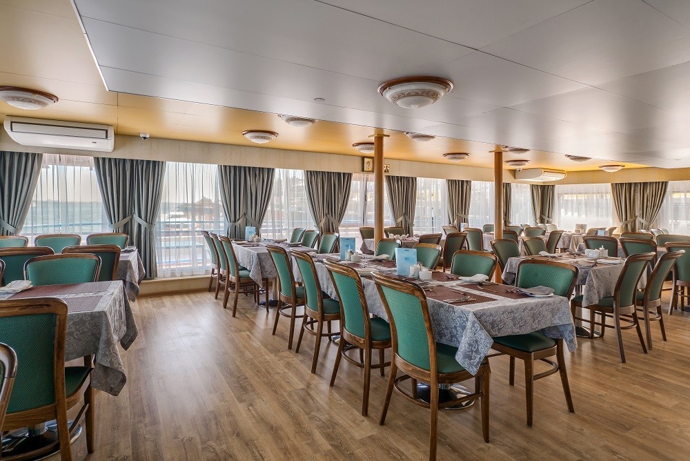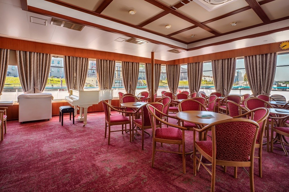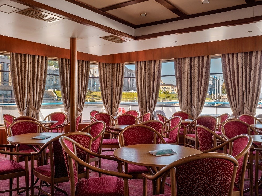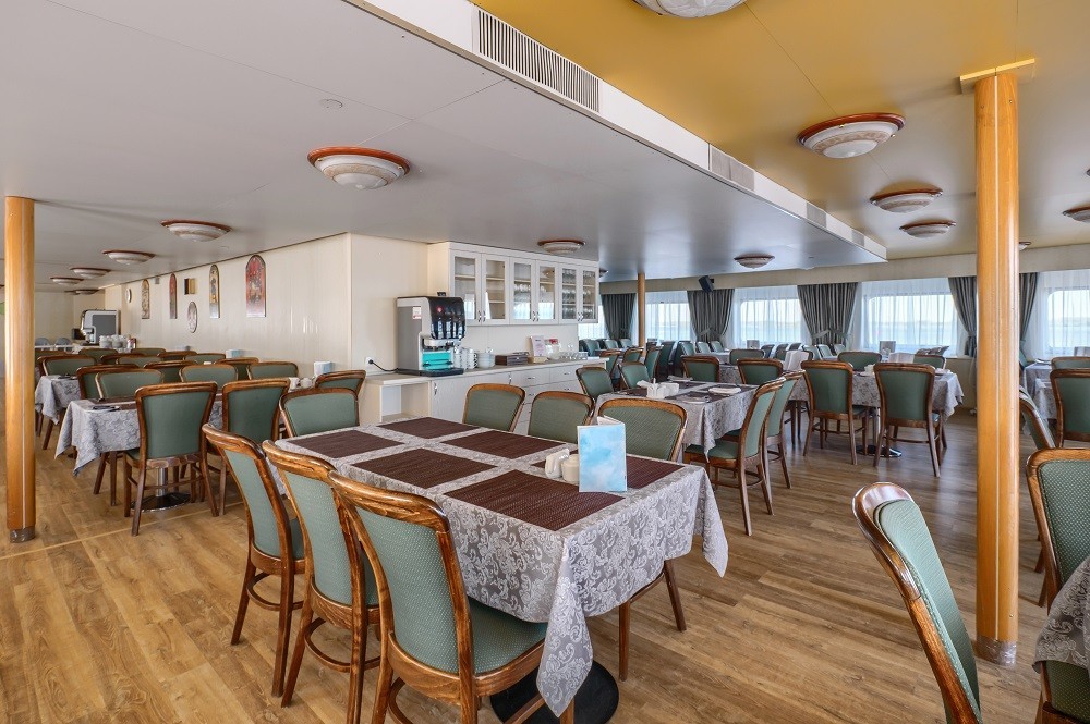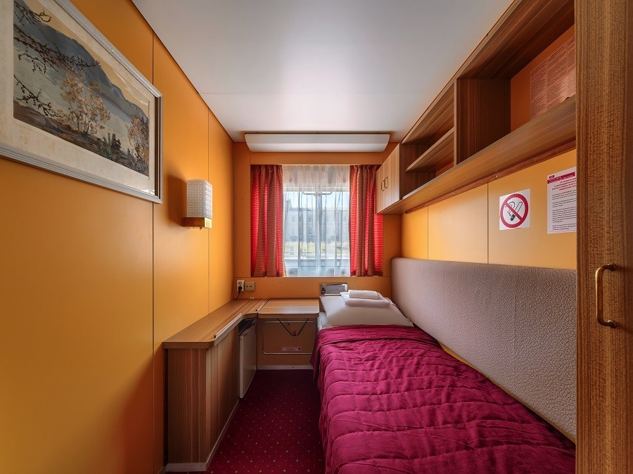 На теплоходе есть каюты разных категорий: 2 каюты «Люкс» с дополнительным комфортом и сервисом, 10 одноместных, 128 двухместных одноярусных и 6 четырёхместных двухъярусных. Каюты оснащены всем необходимым для удобства — шкафом, холодильником, кондиционером, душем, санузлом и обзорным окном или иллюминатором.